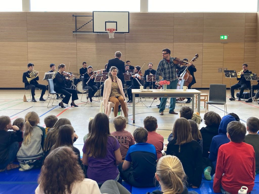 Zitat vom Detmolder Kammerorchester: „Aus verschiedensten Stücken der klassischen Sinfonik, der Oper, des Musicals, auch der Operette und des Chansons formen wir eine spannende musikalische Geschichte mit einer richtigen Musiktheater-Handlung, die von drei Sängerinnen und Sängern und dem Dirigenten erzählt wird – mit allem, was auf einer Musiktheaterbühne dazu gehört! Anders als im Theater, wo die Instrumente normalerweise im Orchestergraben „verschwinden“, sitzt das Ensemble auf der Bühne und die Handlung passiert hauptsächlich davor. Wir planen unser Programm aus der Geschichte, die wir erzählen wollen, heraus. Dadurch entsteht einerseits eine enorme musikalische Vielfalt, die andererseits durch die musiktheatralische Handlung, unsere Geschichte, verschmilzt. Die Kinder empfinden sich selbst als Akteure. Wir erklären nicht Musik, wir erleben sie als Musiktheater selbst. Genauer betrachtet bewegt sich unser Programm daher zwischen den Bereichen Konzert und Musiktheater/Oper/Musical. Werke von W.A. Mozart, A. Chatschaturjan, G. Rossini, G. Gershwin u.a.“